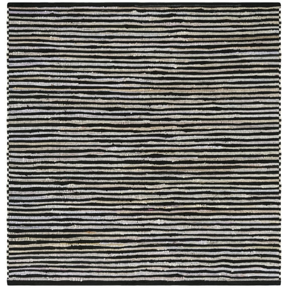 SAFAVIEH Rag Fergal Striped Cotton Area Rug, Black/Multi, 6' x 6' Square