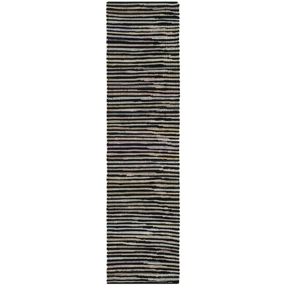 SAFAVIEH Rag Fergal Striped Cotton Runner Rug, Black/Multi, 2'3" x 5'
