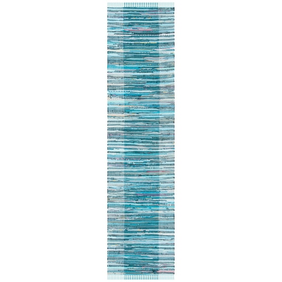 Hero image 0 of SAFAVIEH Rag Romeo Striped Fringe Cotton Runner Rug, Light Blue/Grey, 2'3" x 9', 0 of 7