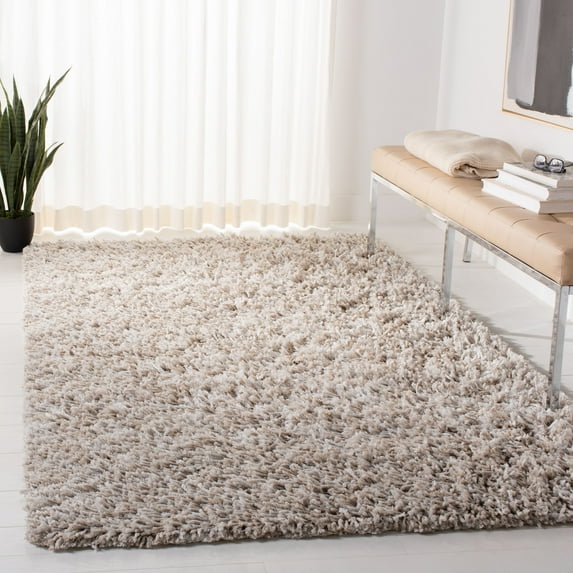SAFAVIEH Rio Kynaston Solid Polyester Shag Area Rug, Beige/Ivory, 6' x 9'