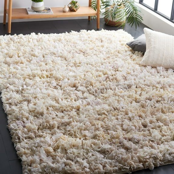 Safavieh Rio Dallas Geometric Polyester Shag Area Rug, Creme, 6' x 9'