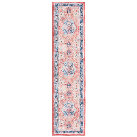 Hero image 0 of SAFAVIEH Riviera Vasil Medallion Polyester Machine Washable Runner Rug, Navy/Red, 2'2" x 9', 0 of 8