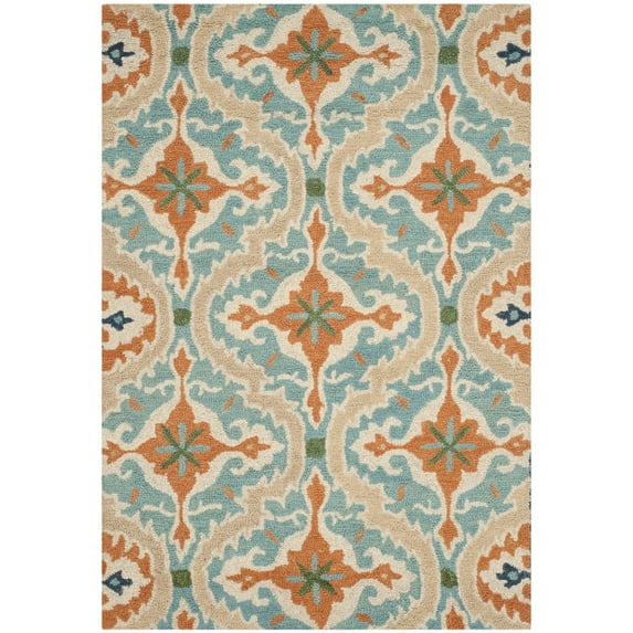 SAFAVIEH Roslyn ROS595A Handmade Blue / Beige Rug The Roslyn Collection features finely crafted area rugs brimming with the warm, welcoming look and feel of Americana style. Roslyn is hand-tufted using pure wool and designed with charming patterns and a soft color palette. These versatile rugs are a great choice for any room of the home or professional business office. Rug has an approximate thickness of 0.5 inches.