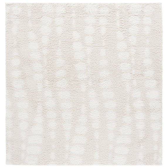 SAFAVIEH Rumi Jasmine Abstract Polyester Shag Area Rug, Ivory/Light Beige, 6'7" x 6'7" Square