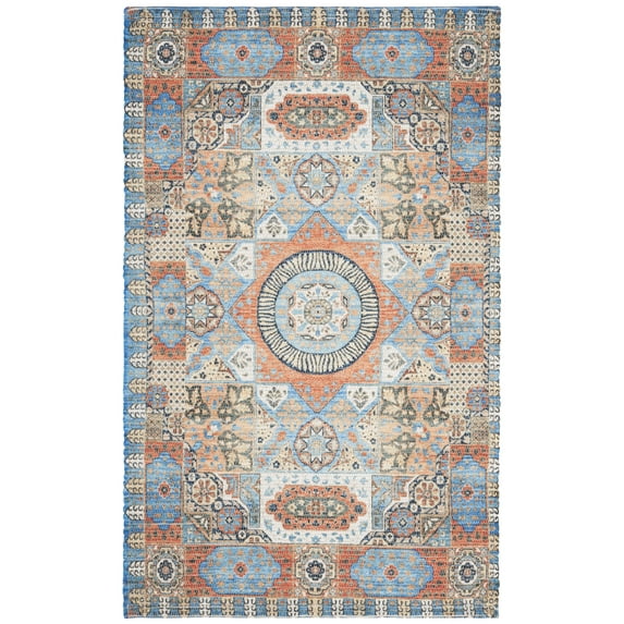 Hero image 0 of SAFAVIEH Saffron Leighton Border Cotton Area Rug, Orange/Blue, 3' x 5', 0 of 6