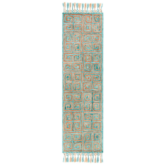 SAFAVIEH Sahara SAH469P Handmade Rust / Aqua Rug Add contemporary boho flair to your living space with a stylish rug from SAFAVIEH�s Sahara Collection. Expertly hand-tufted by skilled artisans, this collection has lively geometric Moroccan-inspired patterns for a chic relaxed look. Place in a dining space, kitchen nook, or living room for a casual ambiance. Rug has an approximate thickness of 0.5 inches.