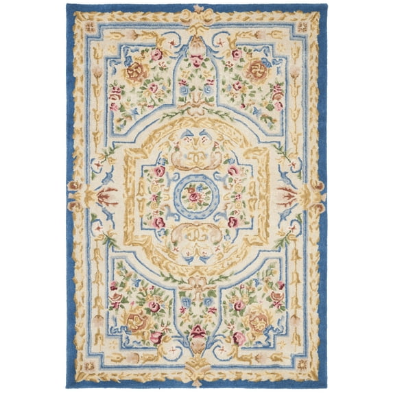 SAFAVIEH Savonnerie Barrfind Bordered Area Rug, Blue/Ivory, 4' x 6'SAFAVIEH Savonnerie SAV118M Handmade Blue Ivory RugSAFAVIEH Savonnerie Barrfind Floral Wool Area Rug Blue Ivory 8 x 10