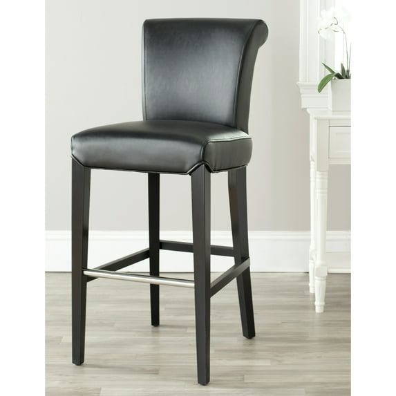 SAFAVIEH Seth Bar Stool Black The clean lines of the Seth Bar Stool make it just right for any hometraditional to contemporary. Featuring a solid birch wood frame with a black finish, Seth offers comfortable seating at the just right height of 30 inches. The seat and back are upholstered in black bicast leather with a gentle curved back for added comfort and style. No assembly required.