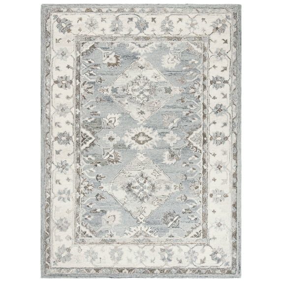 SAFAVIEH Suzani SZN331A Handmade Grey / Ivory Rug Playful patterns with colorful ornamental medallions and florals comprise the Suzani Collection of hand-hooked wool rugs. Expert construction from premium wool ensures a beautifully crafted one-of-a-kind piece that works well in contemporary, bohemian, and transitional styles of home d�cor. Rug has an approximate thickness of 0.5 inches.