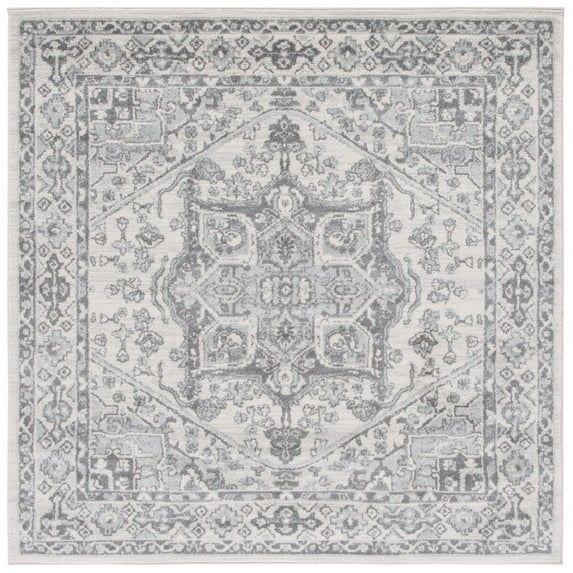 SAFAVIEH Tulum Rylie Traditional Area Rug, 6'7" x 6'7" Square, Ivory/Grey