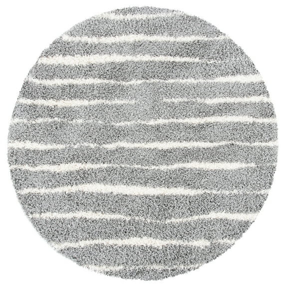 Hero image 0 of SAFAVIEH Venus Sophie Striped Shag Area Rug, 6'7" x 6'7" Round, Grey/Ivory, 0 of 9