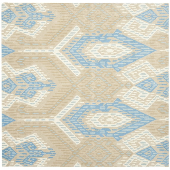 SAFAVIEH Wyndham Donella Geometric Wool Area Rug, Blue/Ivory, 7' x 7' Square