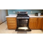 Sync with your compatible microwave. Chef Connect offers 3 options, so you can easily sync clocks and the range burners with your microwave's surface light and vent.; Edge-to-edge cooktop with continuous cast-iron grates. Accommodates pots and pans of various sizes and makes it easy to move cookware between burners.; 5 burners. Include an 18,000 BTU left-front Power Boil burner, a 5,000 BTU left-rear Precise Simmer burner, an 18,000 BTU right-front Power Boil burner, a 9,500 BTU right-rear burner and a 10,000 BTU center oval burner for versatility.; Prepare a variety of recipes. 2 Power Boil burners let you rapidly boil water, a Precise Simmer burner allows you to cook delicate sauces and a center oval burner makes it easy to prepare breakfast using the included reversible griddle/grill.; Circulates heat throughout the oven. Gas convection technology helps ensure optimal cooking results.; Helps prevent spills from spreading. Sealed burners eliminate the space between the burners and the cooktop, so you can easily wipe away messes. Plus, the grates can be tossed into your dishwasher when you're done cooking.; Self-cleaning with steam clean option. Spend less time scrubbing with a range that does the work for you.; Accommodates multiple courses simultaneously. A 5.6 cu. ft. oven with 3 adjustable oven racks helps you coordinate large meals.; Keep cookie sheets, muffin tins and other essentials close at hand. Storage drawer provides an easily accessible spot for your baking and cooking accessories.; Safely maintains a temperature for an extended period of time. Sabbath mode helps you comply with kosher cooking practices.; Gas connector is sold separately and is not included.; Required for Installation: All gas range purchases require a gas line hookup kit be purchased from Best Buy. If a gas line hookup kit is not purchased, your delivery will be drop-off only. Find a hookup kit in the accessories section on this page.; Antitip Bracket: Our home delivery teams or installers are required to install an antitip bracket at no additional charge. Refusal of antitip bracket installation results in a drop-off only delivery, no connections will be completed.; Free delivery on appliance orders $399 and up. Gas appliances may require special installation, which will not be included with delivery. Call 1-888-BEST BUY (1-888-237-8289) to find out more and to purchase installation.; Required parts sold separately. Find essential parts for installation in the accessories section on this page.; Level the appliance. Our home delivery teams offer anti-tip bracket installation at no additional charge. This bracket is essential for safe operation, and Best Buy won't be able to complete your connections without it.; Need more information?. See what's included with home delivery and installation.