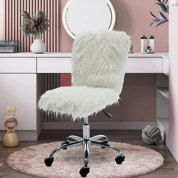 SESSLIFE Fluffy Vanity Chair, Faux Fur Height Adjustable Swivel Vanity Accent Chair, Modern Home Office Desk Chair, White