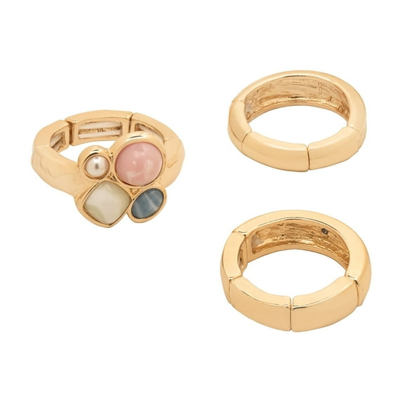 Hero image 0 of Time and Tru Women's Gold Tone Stretch Ring Set with Resin Accents Modern Style, 0 of 5