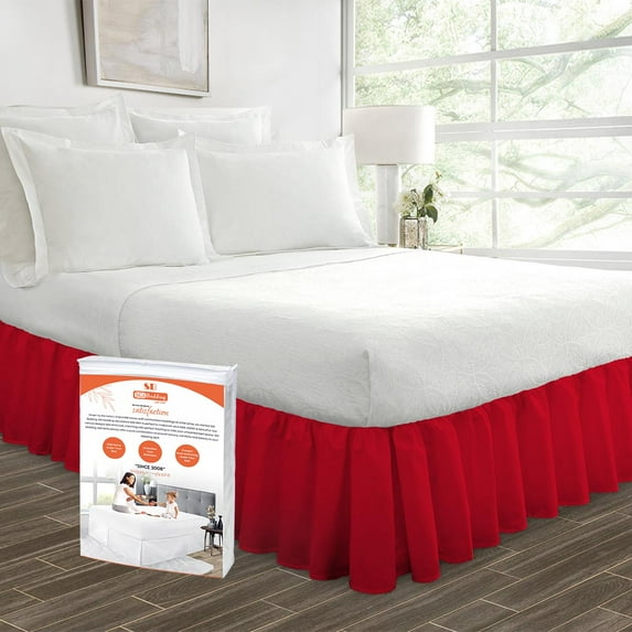 1194.6 out of 5 Stars. 119 reviewsShipping, arrives in 3+ daysSiloon Wrap Around Ruffled Bed Skirt with Adjustable Elastic Belt - 15 Inch Drop Easy to Put On, Wrinkle Free Bedskirt Dust Ruffles, Bed Frame Cover for Queen, King and C-King Size Beds,Burgundy $18.59