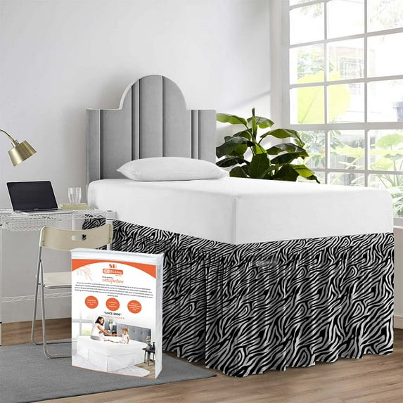 SGI Bedding Dorm Room Bed Skirt | Twin XL 36" Ruffled Microfiber Bed Skirt | Fade Resistant, Wrinkle Free, Anti-static, Decorative, Extra Storage Space, Clutter-Free | Zebra Print