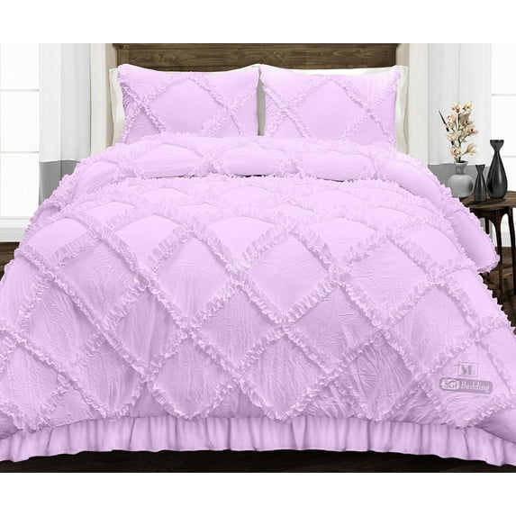 SGI Full Diamond Ruffle Comforter Set Microfiber 3 Piece Lilac