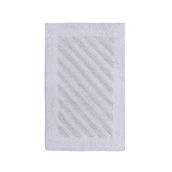 This opulent diagonal striped bath rug is made of 100% soft plush cotton and is super soft to the touch with a dense lush pile. Its reversible design is the ultimate in comfort while being extremely absorbent and functional. The beautiful array of contempory colors will add an elegant look to any bathroom decor. Product Size: 20 x 30. Product Color: White.