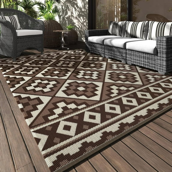 Hero image 0 of SIXHOME Outdoor Rug 5'x8' Waterproof Reversible Patio Rug Modern Lightweight Plastic Straw Indoor Outdoor Rug for RV Camping Deck Balcony Porch Boho Patio Decor Outdoor Carpet Brown and Beige, 0 of 6