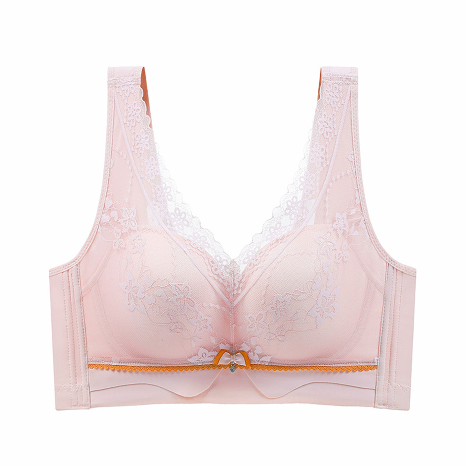 SMihono Comfort Bra Women Push Up Lace Wirefree Bras No Underwire Bralette Wide Shoulder High Support Sport Bras Pink 36