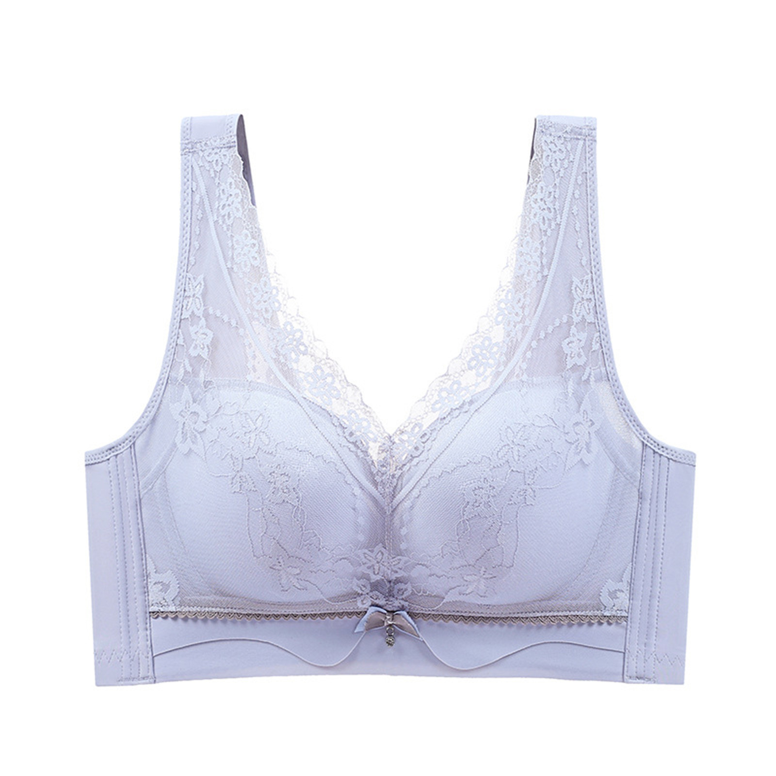 SMihono Comfort Bra Women Push Up Lace Wirefree Bras No Underwire Bralette Wide Shoulder High Support Sport Bras Silver 40