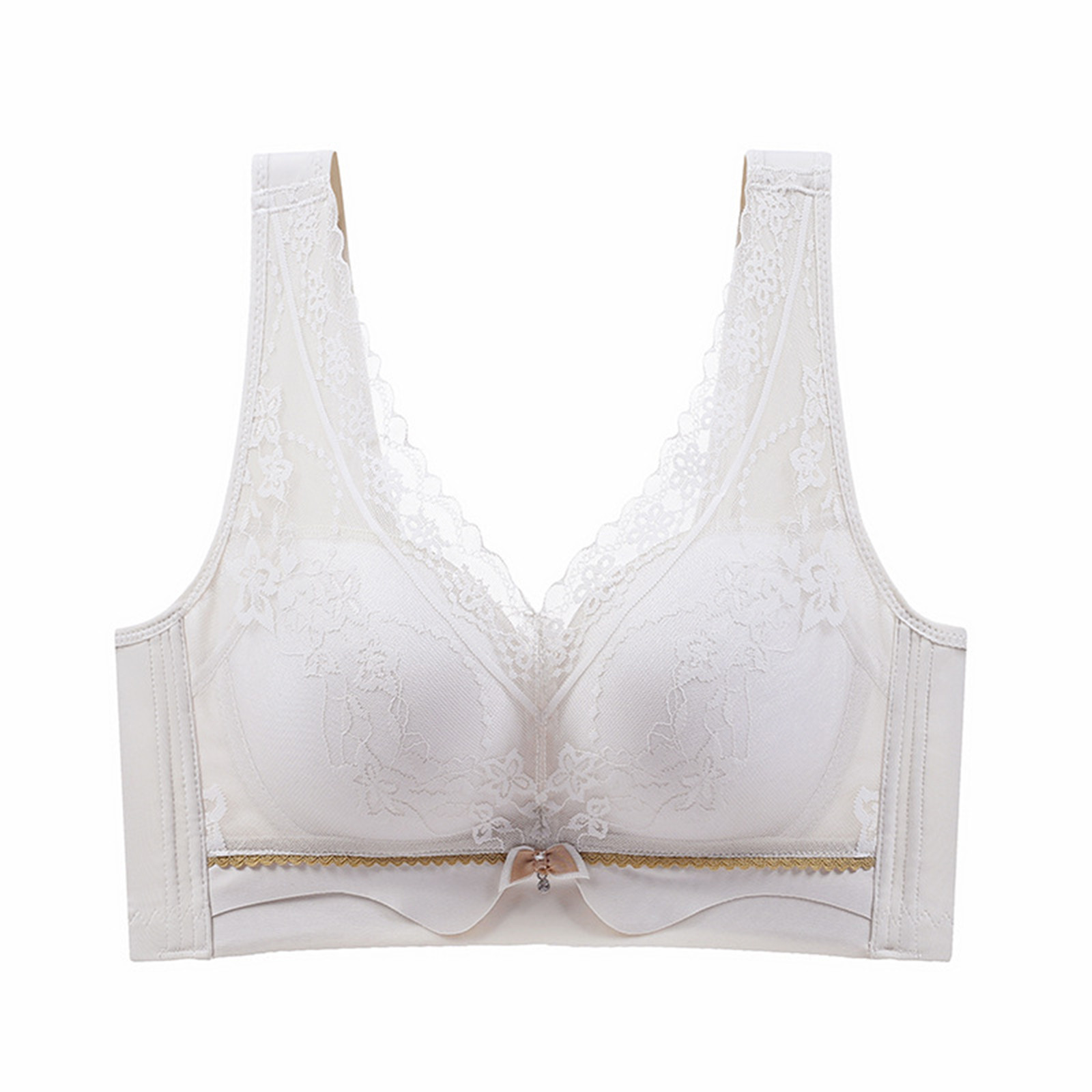 SMihono Comfort Bra Women Push Up Lace Wirefree Bras No Underwire Bralette Wide Shoulder High Support Sport Bras White 40