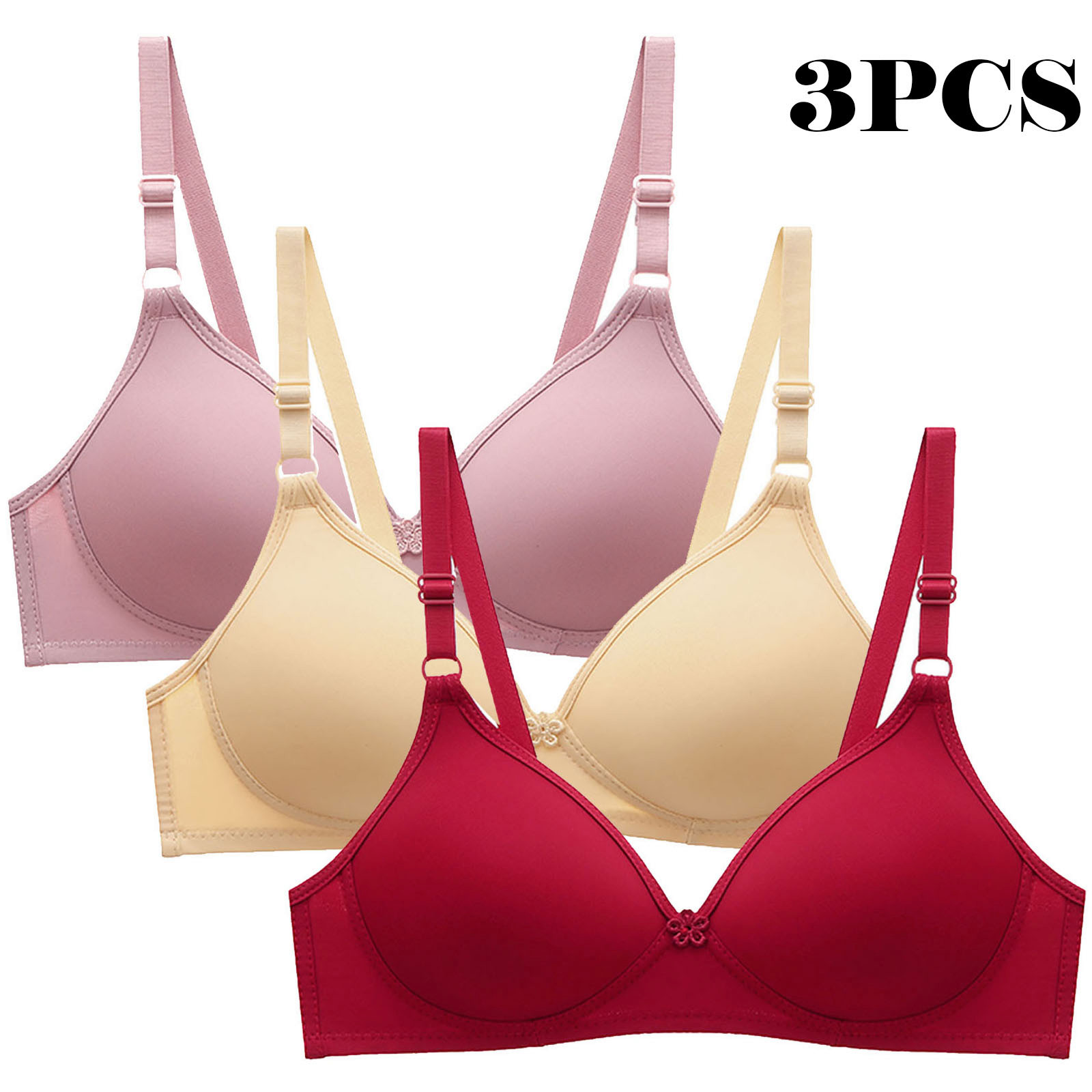 Hero image 0 of SMihono Fashion Wireless Bras for Older Women (3Pc) with Support and Lift Comfortable Full Coverage Tshirt Bras Everyday Sports Bras Multicolor 12, 0 of 6