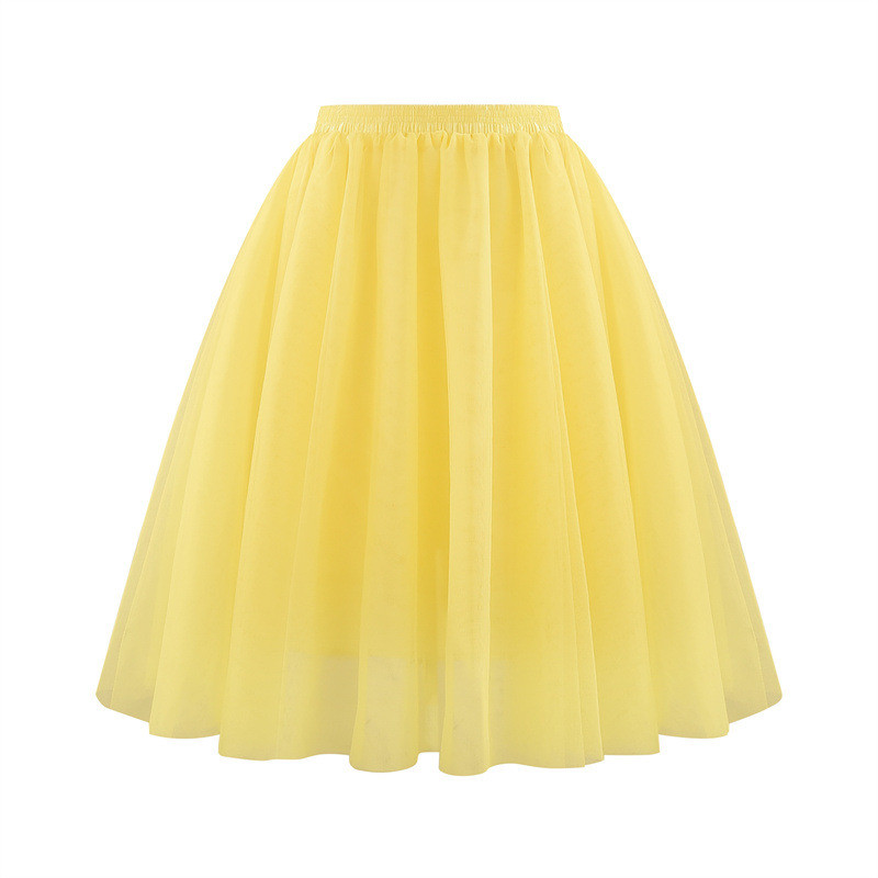 SMihono Fashion Womens A Line Tutu Skirt Layered Tulle Skirt High Waist Pleated Mesh Skirt Teen Girls Carnival Themed Costumes Tutu Yellow M