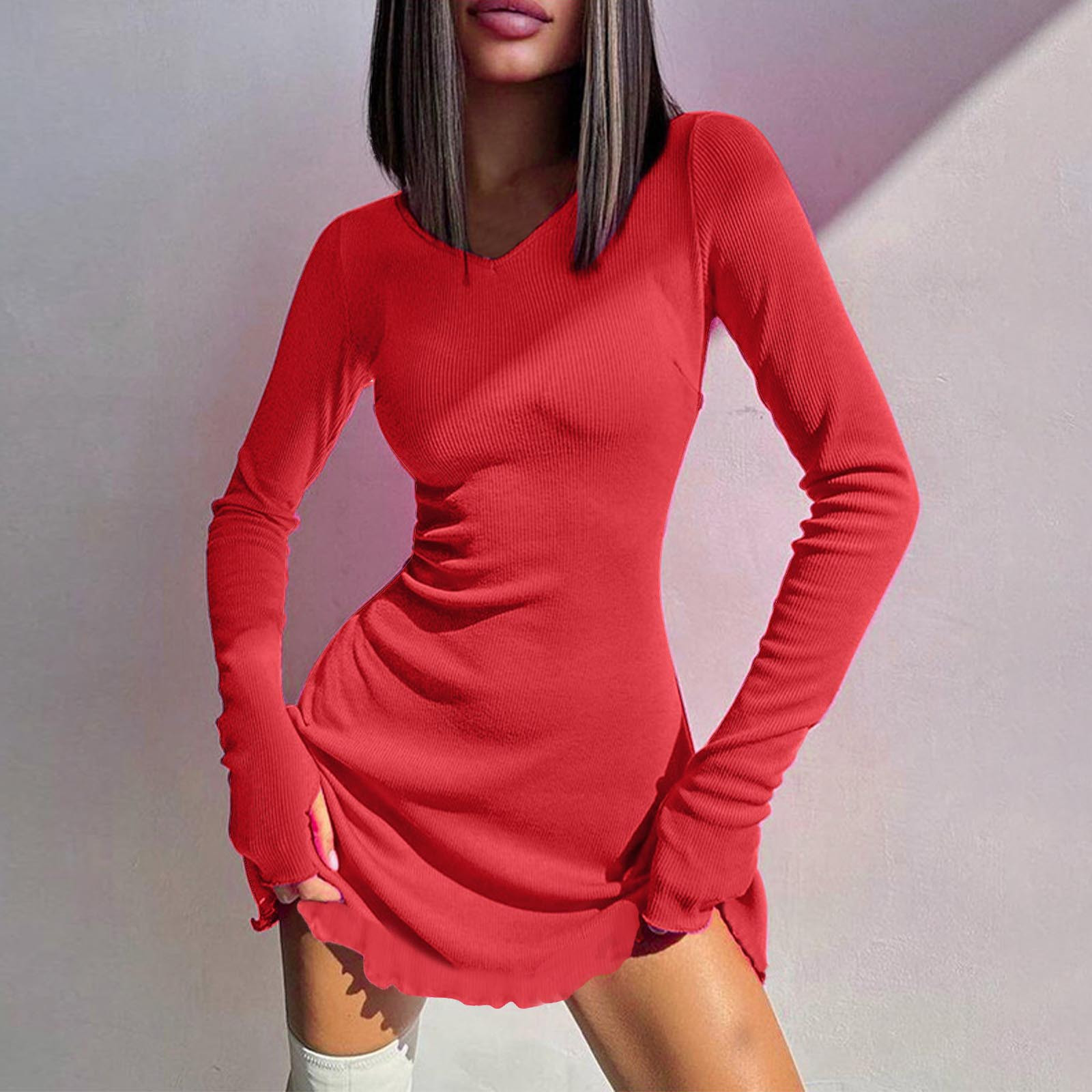 - SMihono Deals Womens Spring Long Sleeve Bodycon Dress Ribbed Knit Slim Pullover Stylsih Mini Sweater Dresses Going Out Clothes Red 8