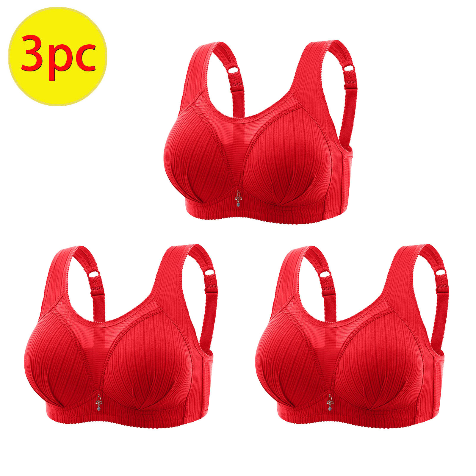 Hero image 0 of SMihono Stylish 3 Pack Plus Size Bras for Old Women No Underwire Full Coverage Sport Bra Comfortable Vest Style Bras Push Up Underwear Red XXXL, 0 of 9