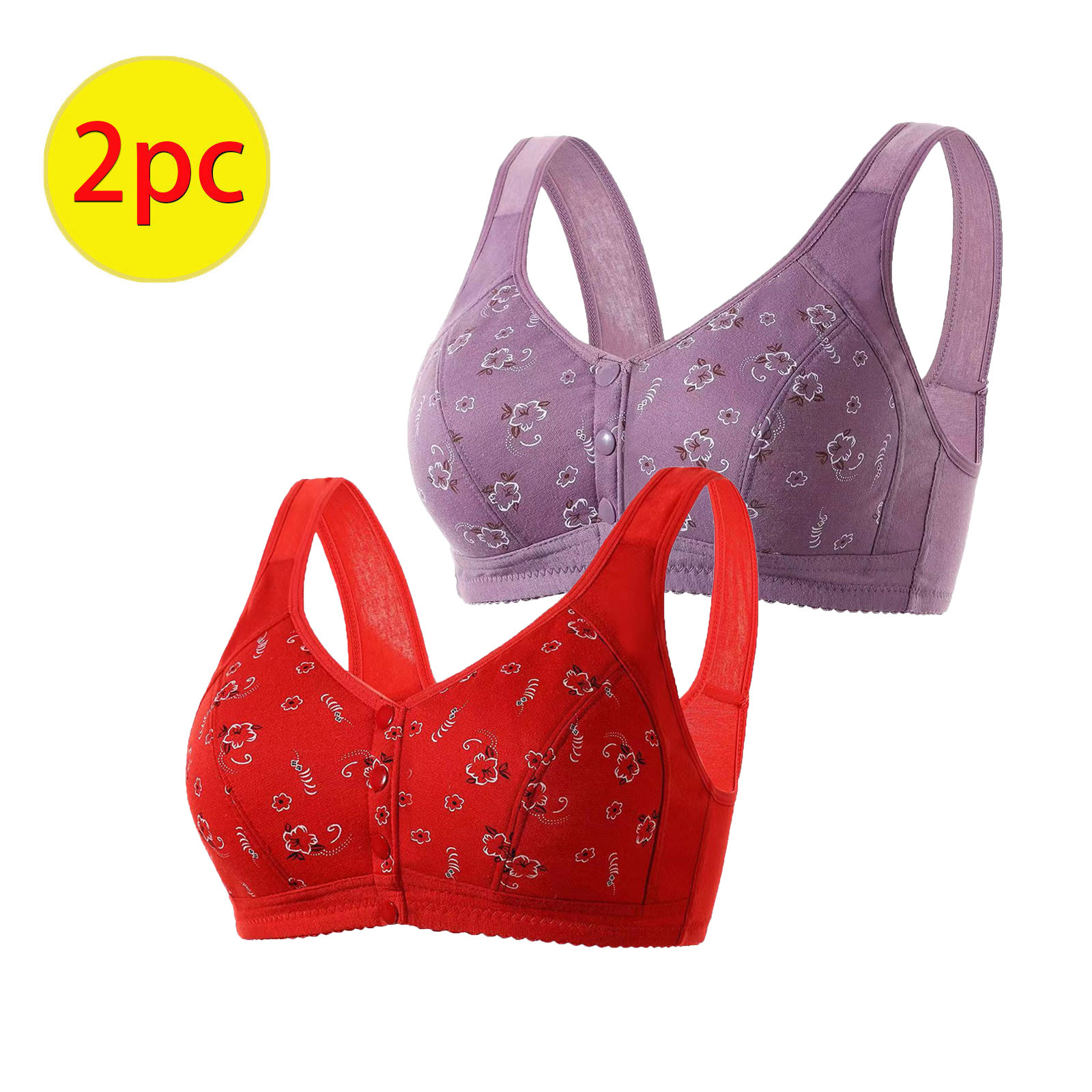 Hero image 0 of SMihono Stylish Daisy Bras for Older Women 2 Pack Front Closure Wireless Bra Senior Comfort Snap Sleep Bra Beauty Back Everyday Bras Red 8, 0 of 5