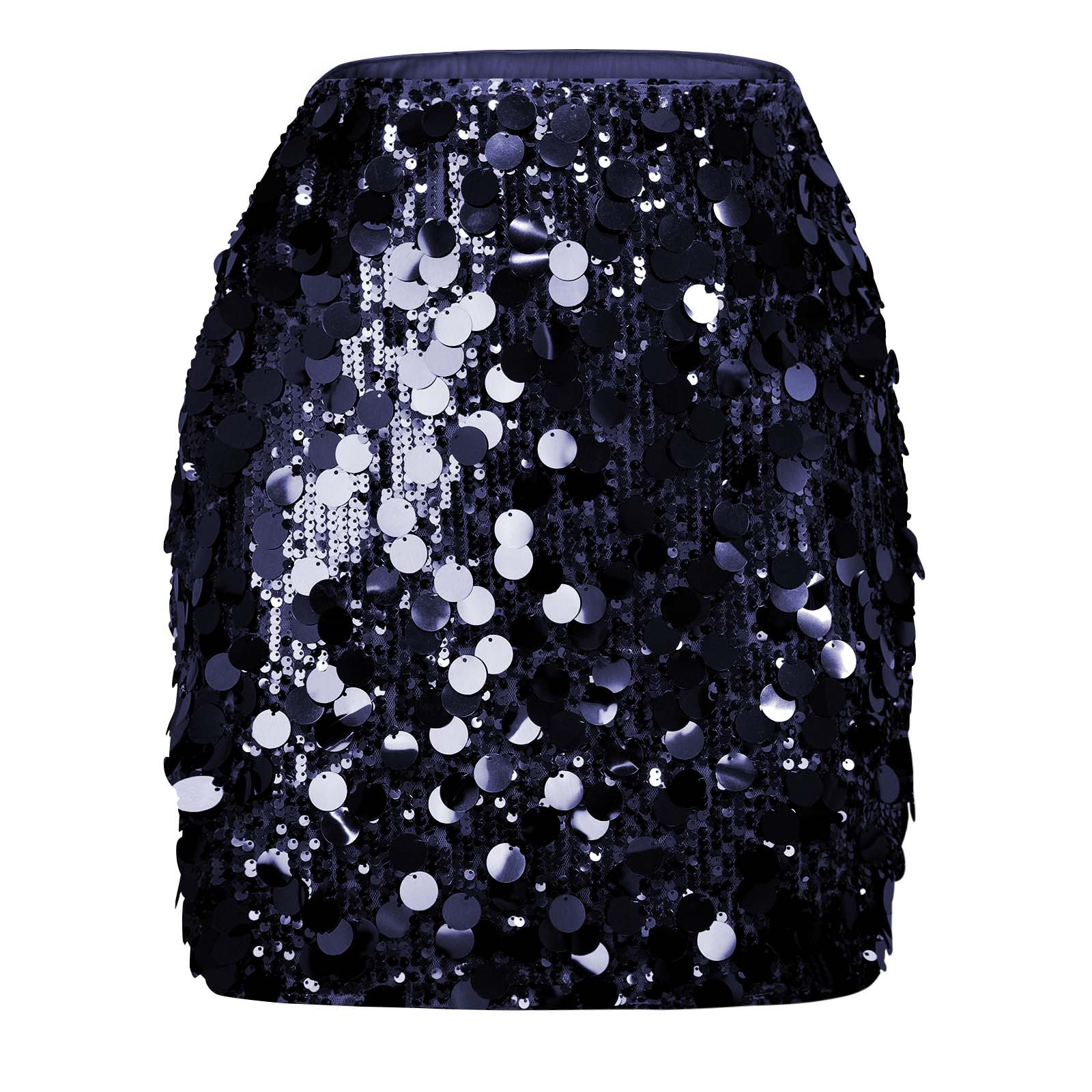 SMihono Sequin Skirt for Women Stretchy Bodycon Mini Skirts Sexy Sparkly Skirt Glitter Shiny Skirt Night Out Party Navy 8-10