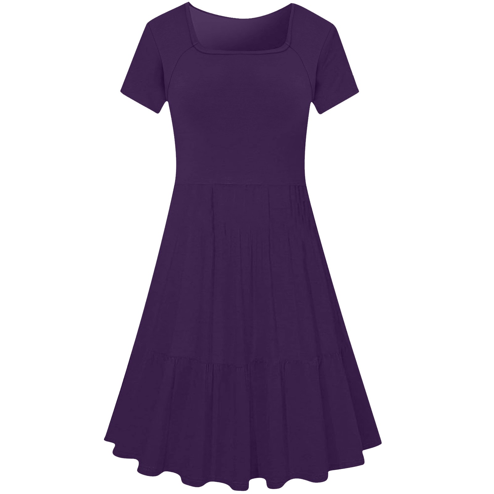 - SMihono Summer Dresses for Women 2025 Square Neck Pleated Midi Dress Plain Short Sleeve Dress Beach Vacation Dresses Purple XXXXXL