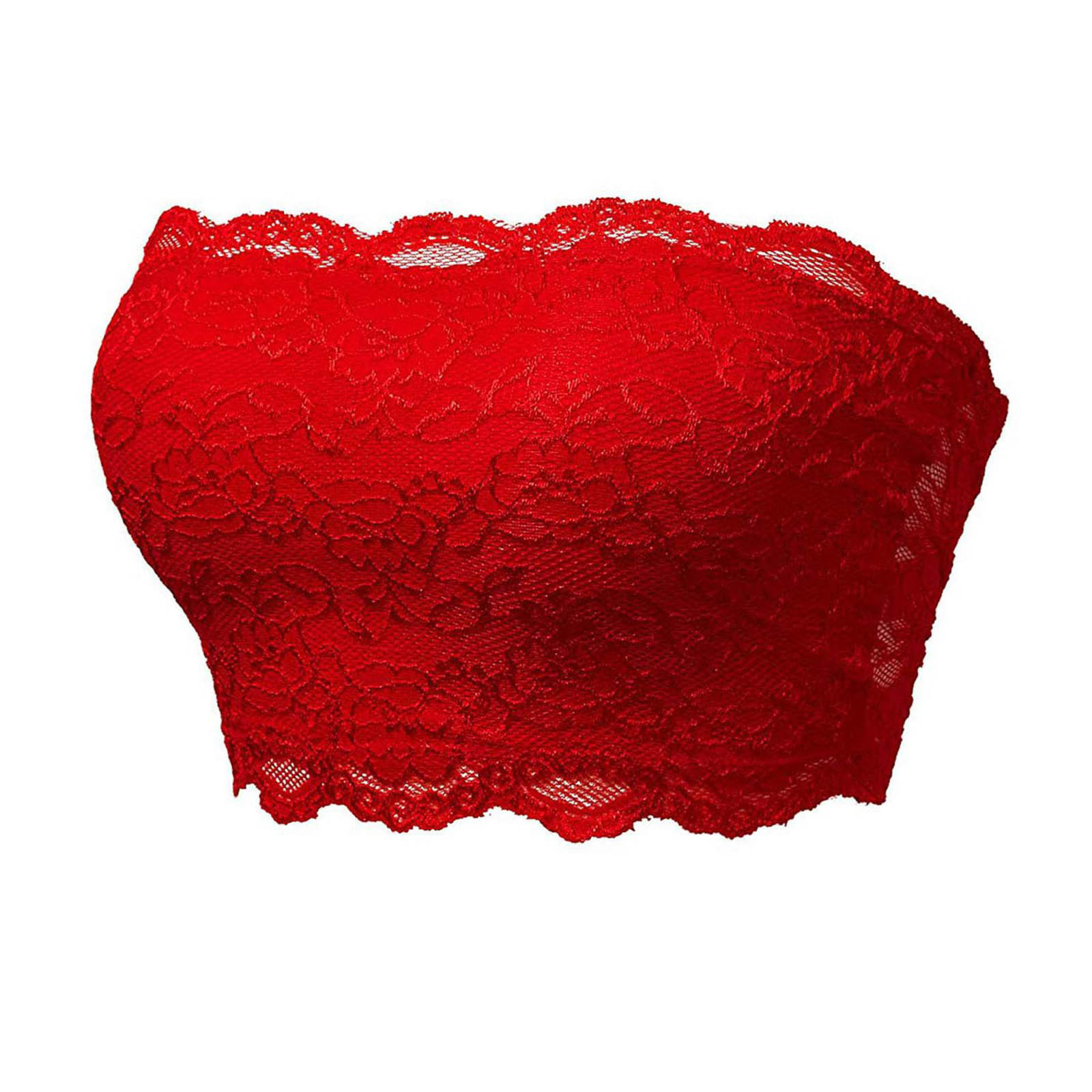 SMihono Women Bandeau Crop Tube Top Floral Lace Strapless Bra Full-Coverage Wireless Bra Padded Tank Bandeau Bra Red 6