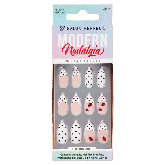 Hero image 0 of Salon Perfect Artificial Fake Press On Nails, 474 Modern Nostalgia, Polka Dot Ladybug, Medium Almond, File, Glue and Prep Pad Included, 30 Nails, 0 of 7