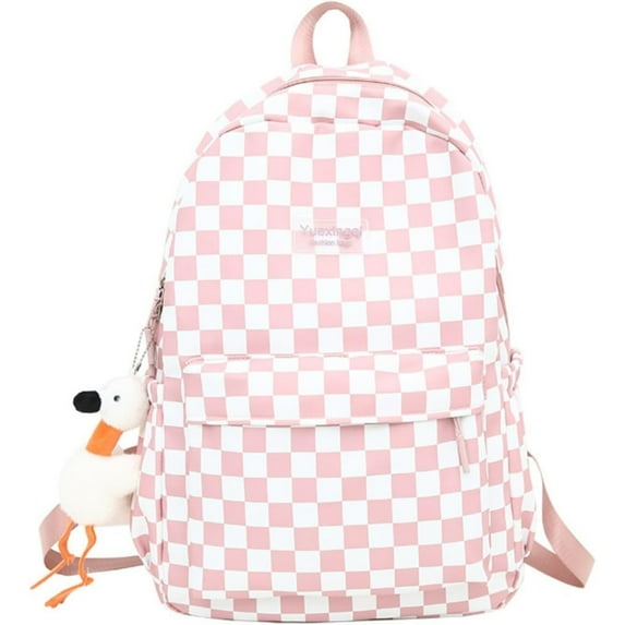 Hero image 0 of SQDWYGUO Y2K Checkered Backpack with Kawaii Pendant Checkerboard Backpack Cute Preppy Laptop Backpack Light Rucksack,Pink, 0 of 7