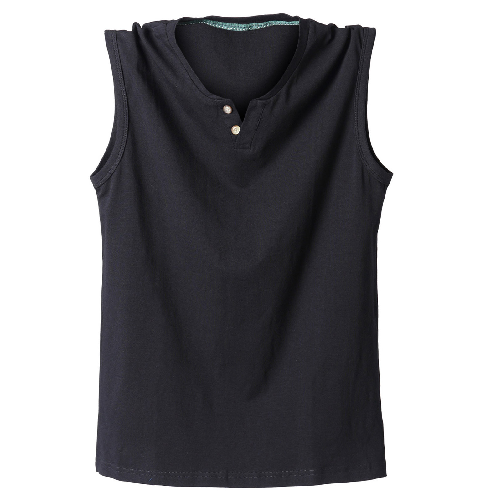 SSAAVKUY Deals Cotton Tank Tops for Men Solid Color Running Workout T Shirts Sleeveless Casual Button Down Comfy Gym Athletic Shirts Black 20