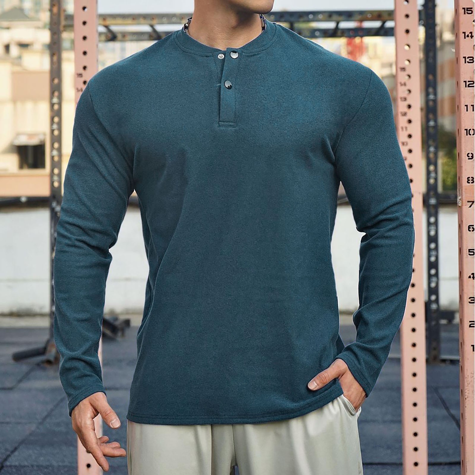 SSAAVKUY Deals Men's Knit Henley Shirts Dress Long Sleeve Sweater Casual Velvet Tops Collarless Quarter Button Pullover Green XL