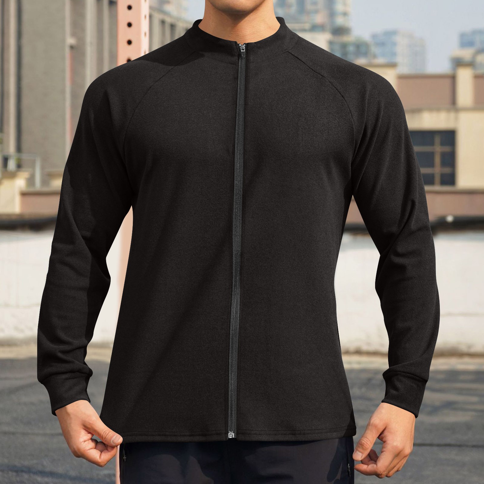 SSAAVKUY Deals Men's Outdoor Sweatshirt Fashion Quick-Dry Active Sports Coats Full Zip Long Sleeve Running Pullover Tops Black XL