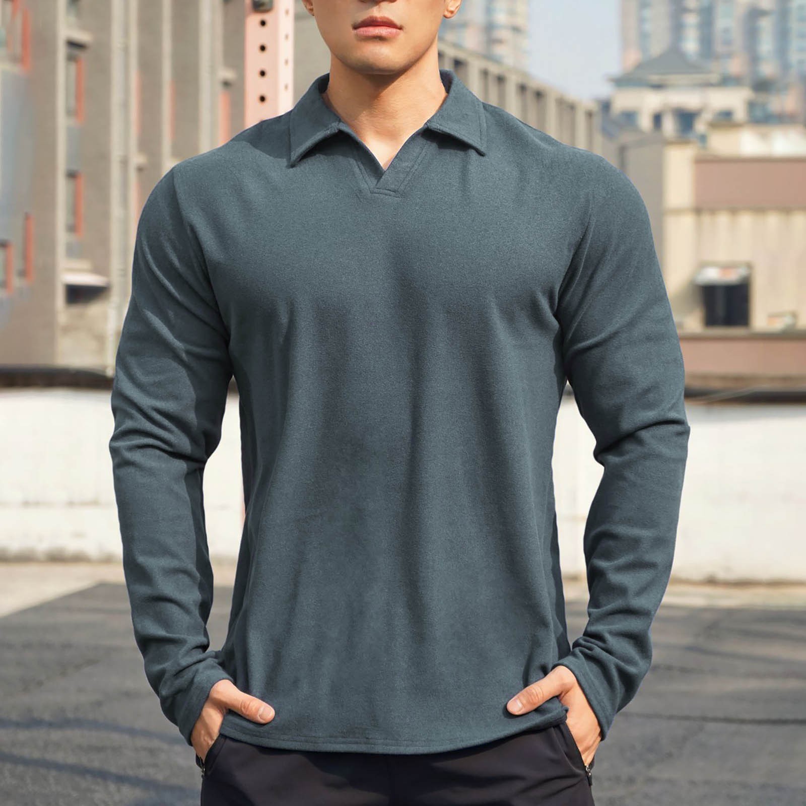 Hero image 0 of SSAAVKUY Men's Knit Polo Sweater Regular Fit Lapel V Neck Velvet Tops Cotton Long Sleeve Soft Classic Sweater Pullover Green XXXL, 0 of 3