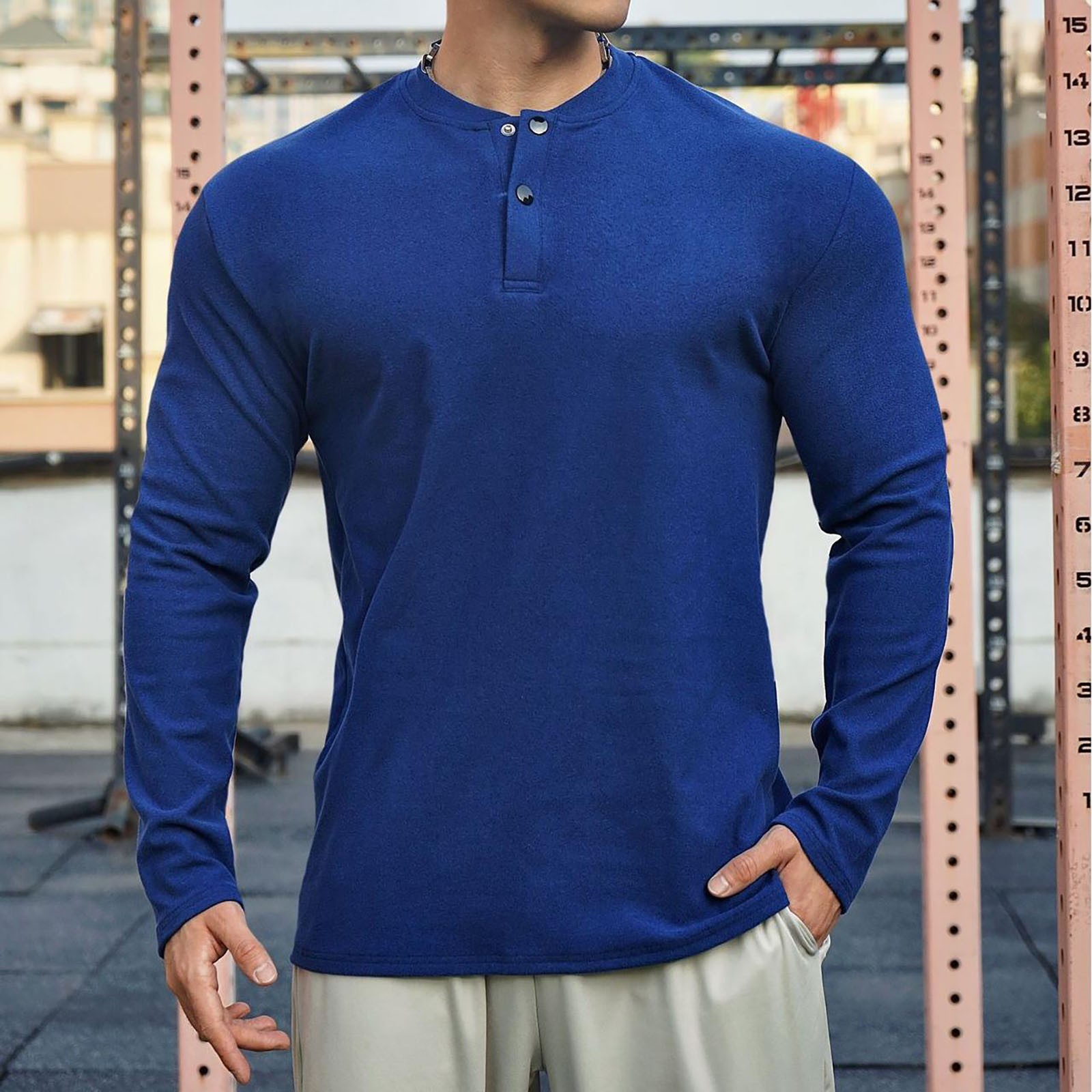 SSAAVKUY Savings Men's Knit Henley Shirts Dress Long Sleeve Sweater Casual Velvet Tops Collarless Quarter Button Pullover Blue XXL