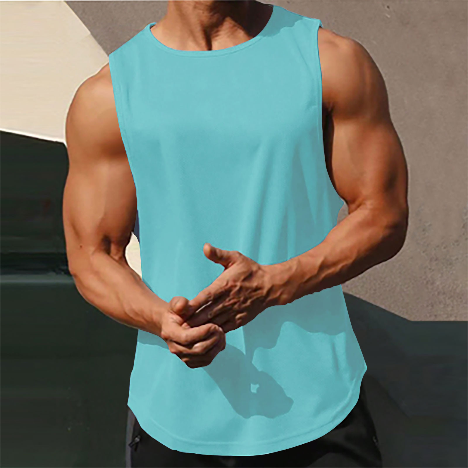 SSAAVKUY Savings Men's Tank Top Cotton Muscle Workout Gym Shirts Moisture Wicking Lightweight Summer Casual Sleeveless Shirts Light Blue L