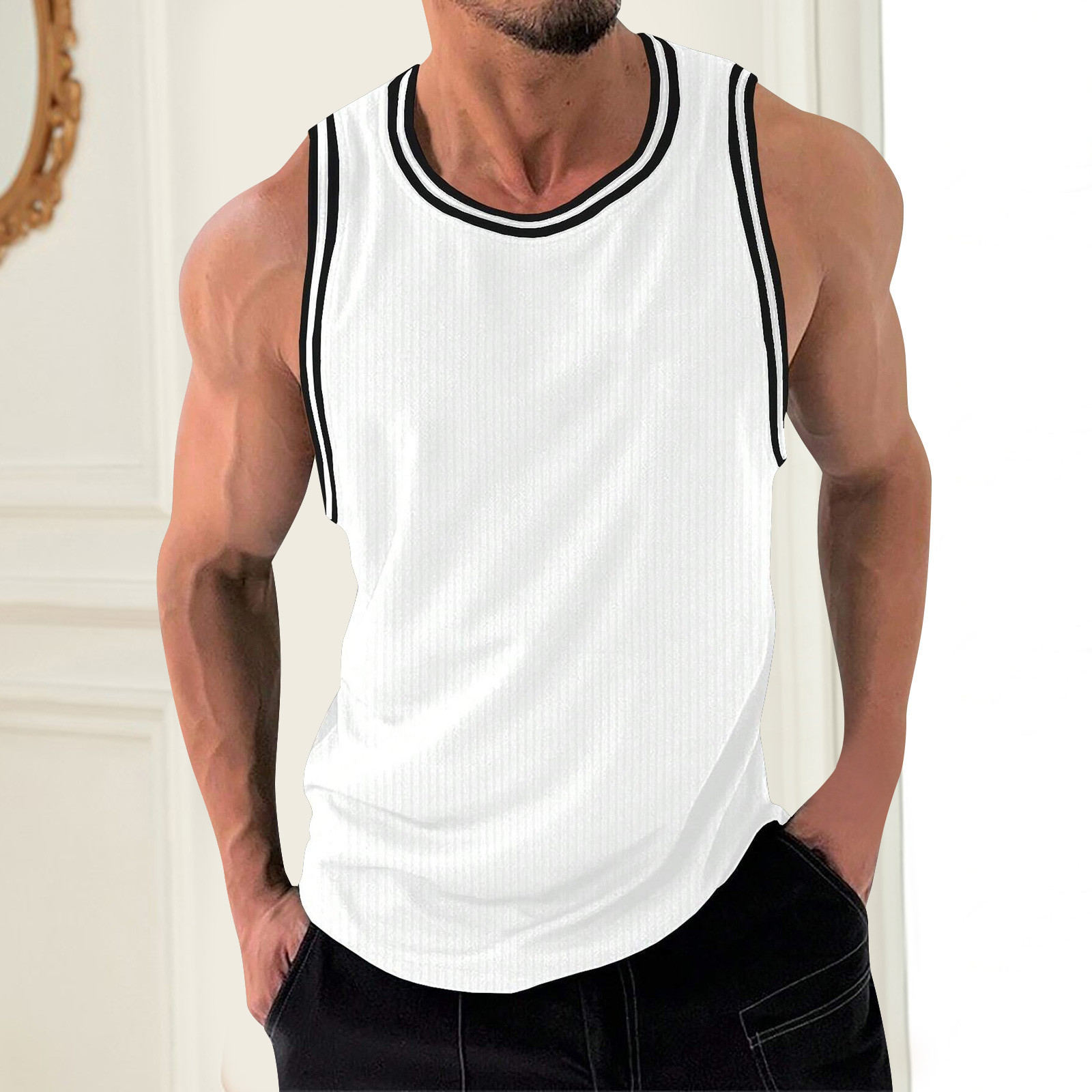 SSAAVKUY Savings Men's Workout Tank Tops Summer Casual Sleeveless Athletic T-Shirts Training Bodybuilding Muscle Top Vest White XL