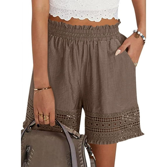 Hero image 0 of STARVNC Women Hollow Out Ruffle High Waisted Smocked Pocket Shorts, 0 of 7