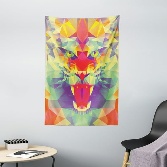 Safari Tapestry, Polygonal Lion Face with Geometric Shades and Effects Exotic King of Jungle Theme, Wall Hanging for Bedroom Living Room Dorm Decor, 40W X 60L Inches, Multicolor, by AmbesonneSafari Tapestry Polygonal Lion Face Geometric Shades Effects Exotic King Jungle Theme Wall Hanging Bedroom Living Room Dorm Decor 40W X 60L Inches MuSafari Tapestry Polygonal Lion Face Geometric Shades Effects Exotic King Jungle Theme Wall Hanging Bedroom Living Room Dorm Decor 60W X 80L Inches Mu