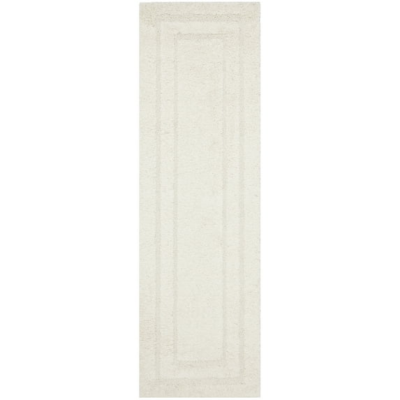 SAFAVIEH Florida Mason Bordered Shag Runner Rug, Cream, 2'3" x 11'
