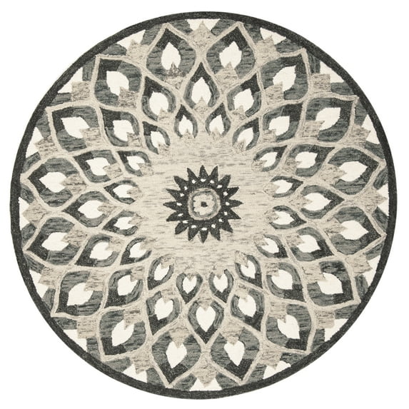 SAFAVIEH Novelty Rosalin Geometric Area Rug, Charcoal/Ivory, 8' x 8' Round