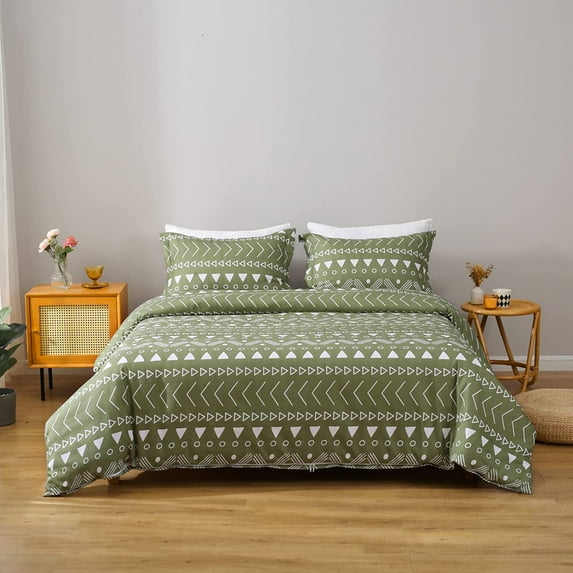 Sage Green Boho Duvet Cover Set Aztec Geometric Duvet Covers Sets with Zipper Breathable Soft Microfiber Stylish Bedding Collection for Bed, Queen Size