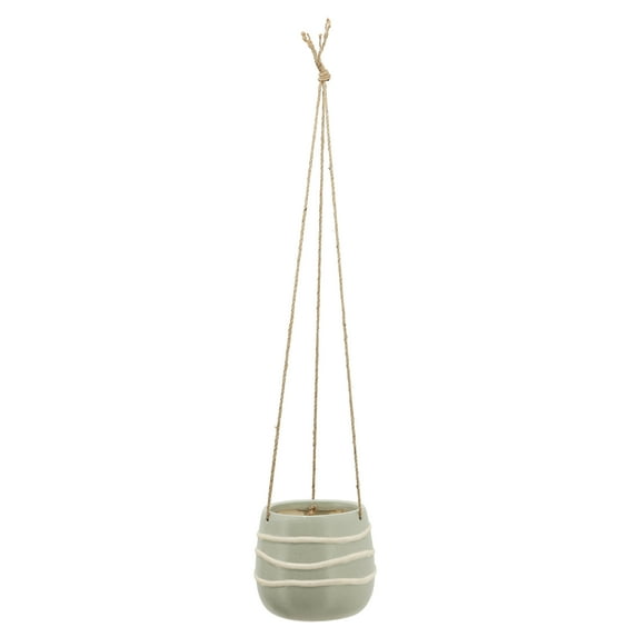 Sagebrook Home Ceramic 6" Hanging Planter, Green, Round, Ceramic, Contemporary, 6"H, Line